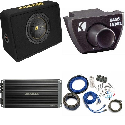 Kicker 48TRTP122 Comp RT 12" Subwoofer Enclosure Package + 46CXA4001 Amp, Bass Knob & CK8 Amp Install Kit Bundle