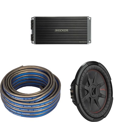 Kicker 48CWRT124 CompRT 12" Subwoofer, DVC, 4-ohm w/ 47Key5001 Amp & Speaker Wire Bundle
