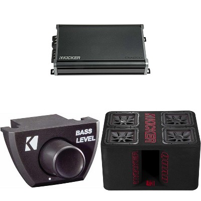 Kicker 47QL7R122 12-Inch (30cm) Loaded Ported Quad Box, 2-Ohm w/ CXA1200.1 Amp & Bass Knob Bundle