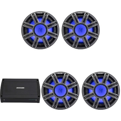 Kicker (2) 51MWF104 - MWF 10-Inch Premium Marine Subwoofer (free-air) 4-ohm & 48KXMA8004 Marine Amp Bundle ( Includes LED Remote )