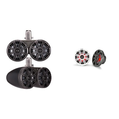 Kicker (2 pair ) 45KMTDC65 Marine Tower Speakers with Swivel Clamps & 45KM654L Speakers White Grills with White Enclosures