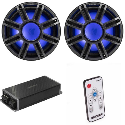 Kicker Marine (2) 51MSC8 Premium 8", KXMA900.5 5 Channel Amp & 51MWLE104 10" Loaded Enclosure, LED Marine Audio Upgrade