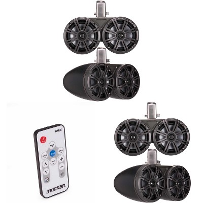 Kicker (2 Pair ) 45KMTDC65 Marine Tower Speakers with Swivel Clamps & 45KM654L Speakers Charcoal Grills with Black Enclosures ( Includes LED Remote )