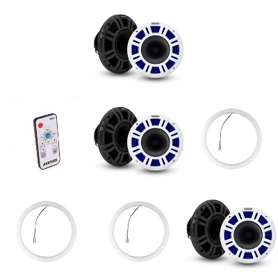 Kicker 45KM654L LED 6.5 Marine Coax with Charcoal and White Grills with a Pair of 47KLSR65 6.5 Led Lighted Speaker Ring