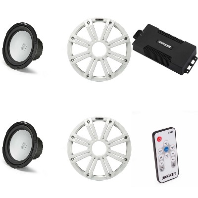 Kicker Marine KPX500.1 Powersports Amp & (2) 10" 4 Ohm ( Charcoal Grill ) Subwoofer Audio Upgrade, Includes LED Remote