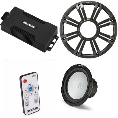 Kicker Marine KPX500.1 Powersports Amp & (2) 12" Free Air 4 Ohm ( Charcoal Grill ) Subwoofer Audio Upgrade, Includes LED Remote