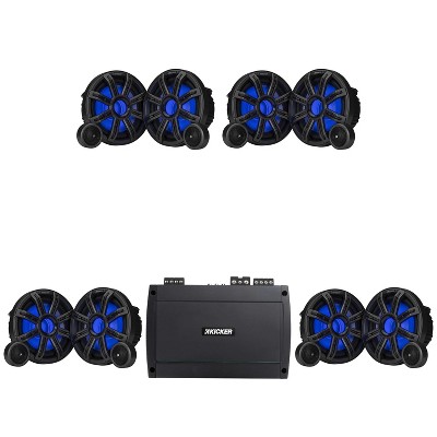 Kicker Marine KPX300.4 Powersports Amp & 6.5", 8" HLCD Marine LED Speakers