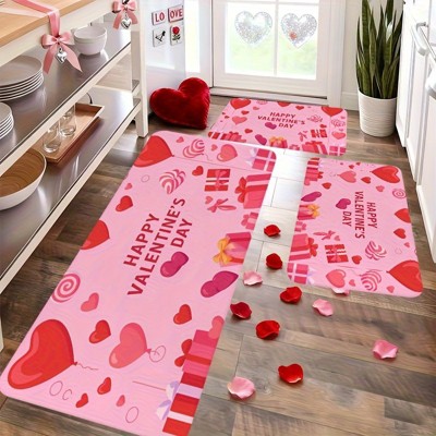 Lomsoe 2/3pcs Valentine's Day Mat Set, Heart-shaped Balloon Pattern Welcome Doormat, Suitable for Doorway, Kitchen Porch, Bathroom Door.