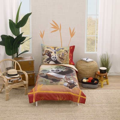 DreamWorks Kung Fu Panda Dragon Warrior Red and Gold Po and Friends 4 Piece Toddler Bed Set