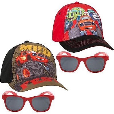 Nickelodeon Boys Blaze & The Monster Machines 2 Pack Cotton Baseball Cap (Ages 2-4) With Sunglasses Blaze Olive/Red