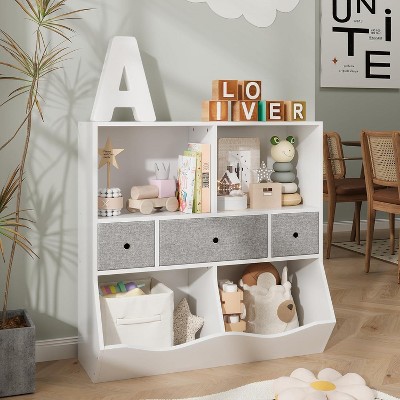 VASIP 3-Tier Wooden Bookshelf with 10 Storage Compartments, Large Capacity Shelf for Living Room and Kids Room,White