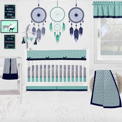 Bacati - Noah Mint Navy 10 pc Baby Crib Bedding Set with Long Rail Guard Cover for Boys