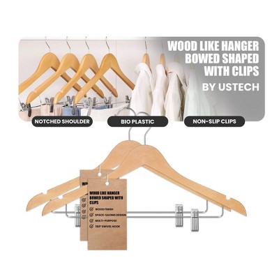 USTECH 20pk Dress/Skirt/Suit/Pants Organiser Clothes Hanger Natural Wood