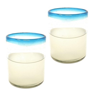 Dos Sueños Mexican Hand Blown Drinking Glasses - Aqua Rim - 14oz - Set of 2