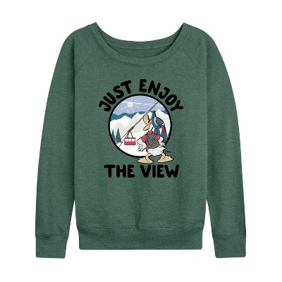 Women's - Disney - Just Enjoy The View Lightweight French Terry Wide Neck Long Sleeve Graphic Shirt
