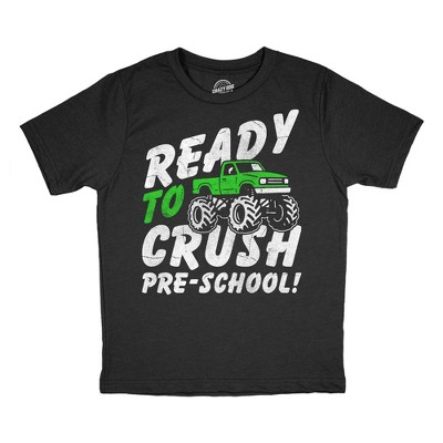 Youth Funny T Shirts Ready To Crush Pre School Sarcastic Monster Truck Graphic Novelty Tee For Kids - Crazy Dog Youth T Shirt for Motivation