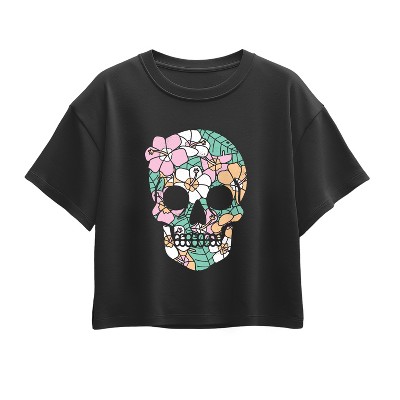 Girls' - Instant Message - Tropical Floral Skull Short Sleeve Boxy Graphic T-Shirt