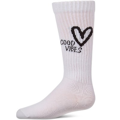 Memoi Girls "Good Vibes Heart" Ribbed Cotton Blend Knee High Sock