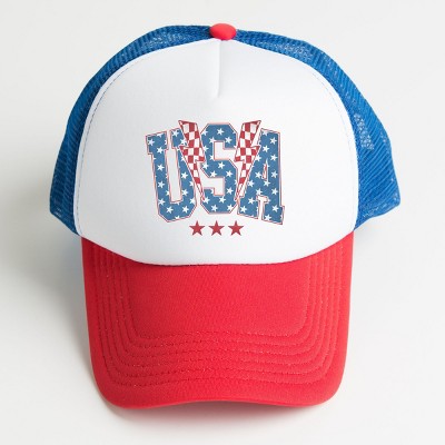 The Juniper Shop USA Checkered Lightning Youth Foam Trucker Hat - Youth - White Red Royal