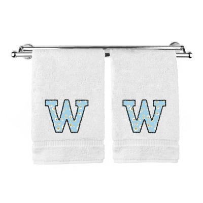 BC BARE COTTON Monogrammed Hand Towels, Personalized Gift, Set of 2 - Embroidered Writing with Light Blue