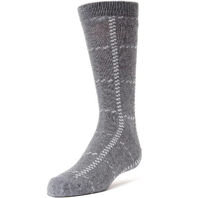 Memoi Windowpane Plaid Boys Cotton Blend Dress Socks