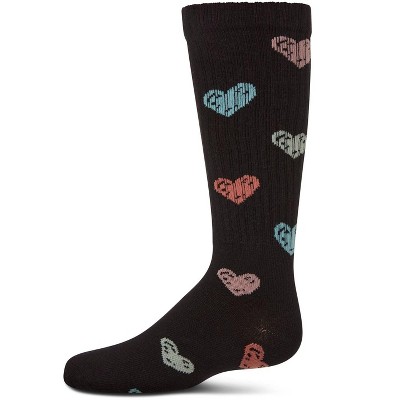 Memoi Girls Ribbed Cotton Blend "Multi Graffiti Hearts" Knee Sock