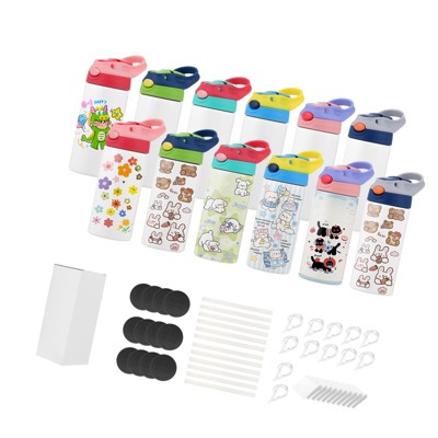 VEVOR Sublimation Tumblers, 12 Pack, 12 oz Kids Sublimation Water Bottles, Food-Grade Stainless Steel Cups with Lids and Straws, White