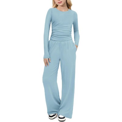 Arshiner Girls 2 Piece Set Fall Outfits Lounge Sets Ruched Long Sleeve Top Wide Leg Pants Sweatsuit Clothing Set