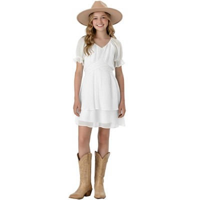 2Bunnies Girls 8yr-14yr Tween Teen Ruffle Puff Sleeve Mini Dress
