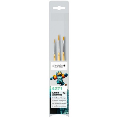 da Vinci JUNIOR Synthetics Miniature Brushes, Synthetic, Acrylic & Tempera, Assorted, 3 Brush Set