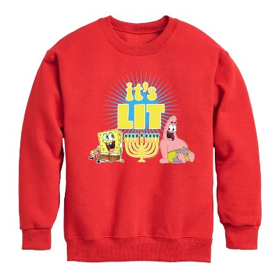 Boys' - SpongeBob SquarePants - It's Lit Hanukkah Graphic Long Sleeve Fleece Sweatshirt