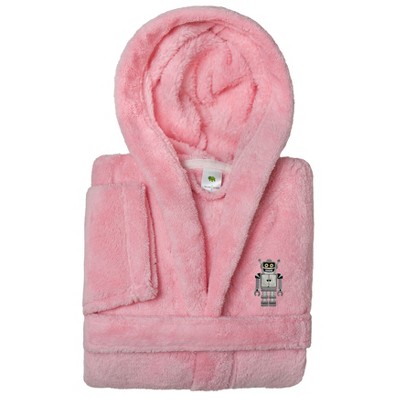 Linum Kids 100% Polyester SUPER PLUSH Double Brushed Hooded Embroidered Pink Bathrobe
