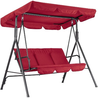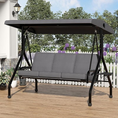 3 Seat Outdoor Porch Swing,2-in-1 Patio Swing Chair with Thickened Removable Cushions,Adjustable Canopy&Cup Holders,Outdoor Swing for Backyard,Garden