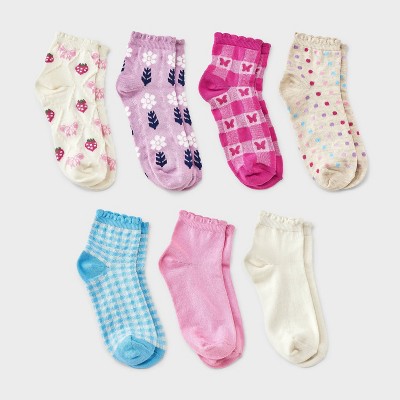 Girls' 7pk Fruit & Floral Ruffle Ankle Socks - Cat & Jack™ Pink/Blue/White