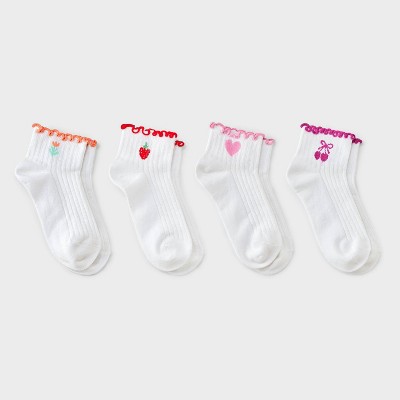 Girls' 4pk Icons Lettuce Edge Ankle Socks - Cat & Jack™ White