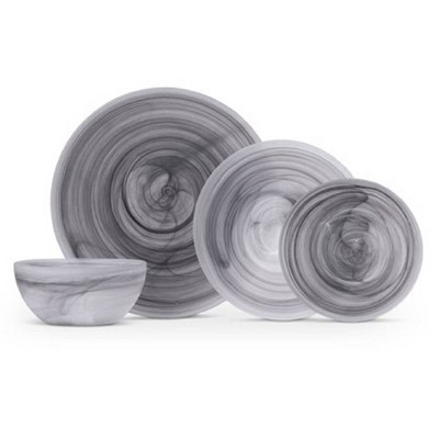 Fortessa Tableware Solutions 16pc Glass La jolla Dinnerware Set Gray: Swirl Pattern, Dishwasher-Safe, Service for 4