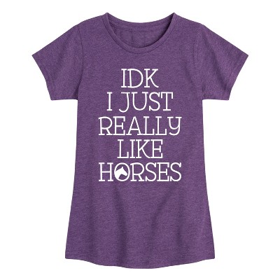 Girls' - Instant Message - Idk I Like Horses Fitted Short Sleeve Graphic T-Shirt