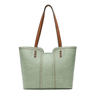Wrapables Corduroy Tote Bag, Casual Everyday Shoulder Handbag, Light Green
