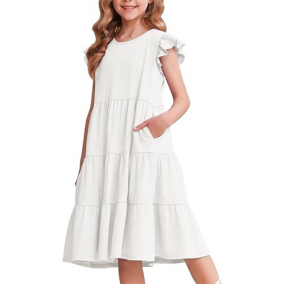 Arshiner Girl's Summer Dresses Ruffle Sleeve Tiered Swing Midi Casual Sundress with Pockets