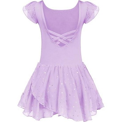 Arshiner Girls Long Sleeve Ballet Leotards with Shinny Skirts Criss-Cross Back Dance Dresses