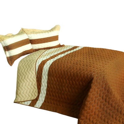 Slickblue Full/Queen Size Bedding, Cotton Quilted Texture, Quilt Set, Patchwork Look, 90x98, Brown, 3pc