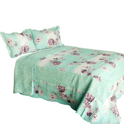 Slickblue Floral Cotton Quilt Set Full/Queen Size 3PC — Vermicelli Quilted Bedspread with Shams
