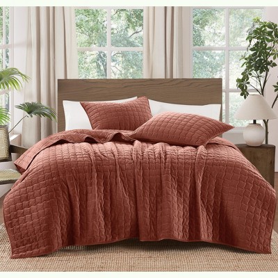 Brooklyn Loom Matte Cotton Velvet Wavy Square Stitch Quilt Set