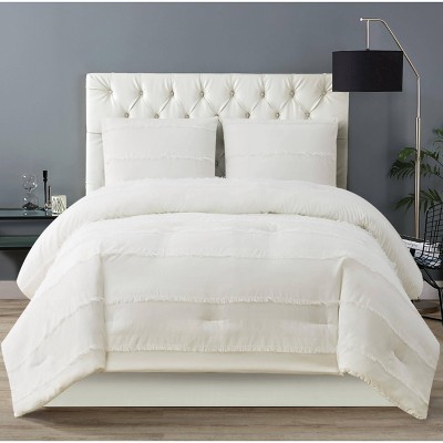 3pc Riley Pleated Comforter Set Cream - Laurel & Mayfair