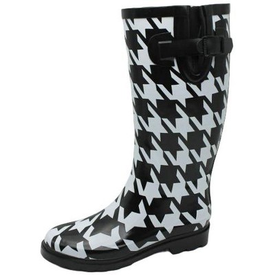 Women's Rain Boots Black Houndstooth Rubber Mid Calf Snow Rainboot
