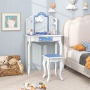Costway Kids Vanity Table & Stool Set with Cute Polka Dot Print Tri-folding Mirror Drawer Pink&White/Light Pink&White/Pink&Black/Blue/Pink