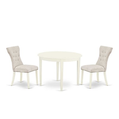 Round Dinette Set - 3 Piece Kitchen Table & Chairs - Linen White Finish - Modern Parson Design