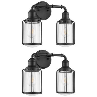 Prominence Home 2 Pack Lincoln Woods 2 Light Industrial Bath Vanity Light, Black