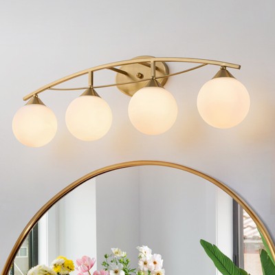ALOADECOR Vintage Brass 2-Light Wall Sconce with Milky Glass Shades Dimmable Vanity For Bathroom Or Hallway(2-Pack)