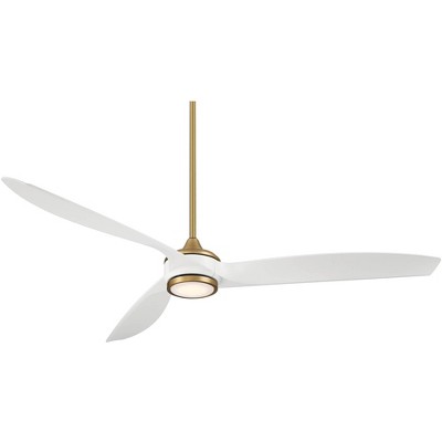 Casa Vieja 60" La Jolla Surf Modern Indoor Ceiling Fan 3 Blade LED Light Remote Control Soft Brass Finish White Blades Bedroom Living Room Kitchen